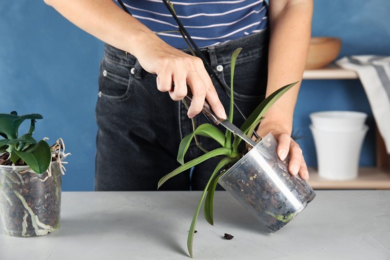 Najlepszą opcją jest podcięcie ich, aby uszkodzenia nie przeszły wyżej. Aby to zrobić, należy wyjąć roślinę z doniczki i ostrym narzędziem uciąć chore, uszkodzone oraz stare korzenie, zarówno powietrzne, jak i wewnętrzne.