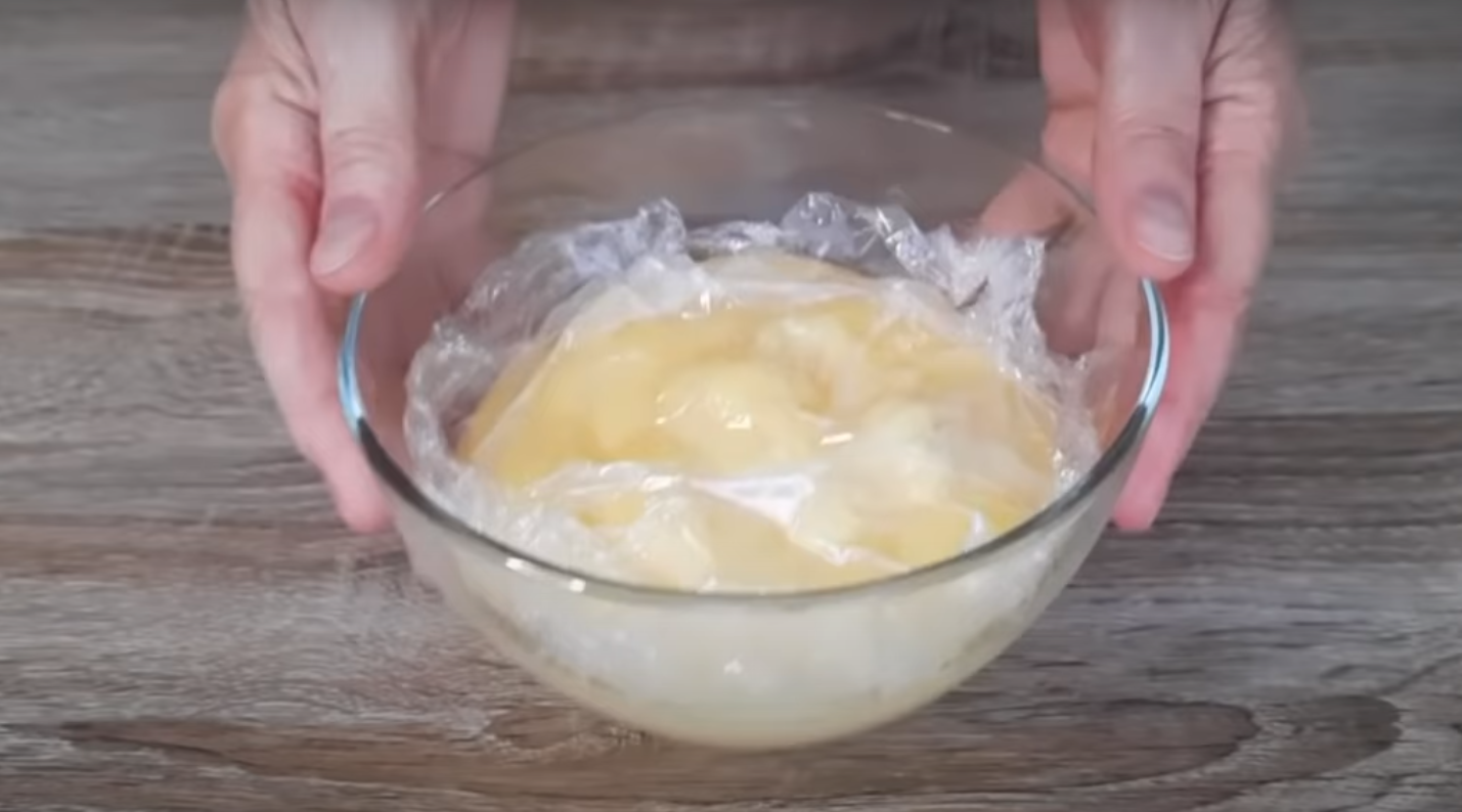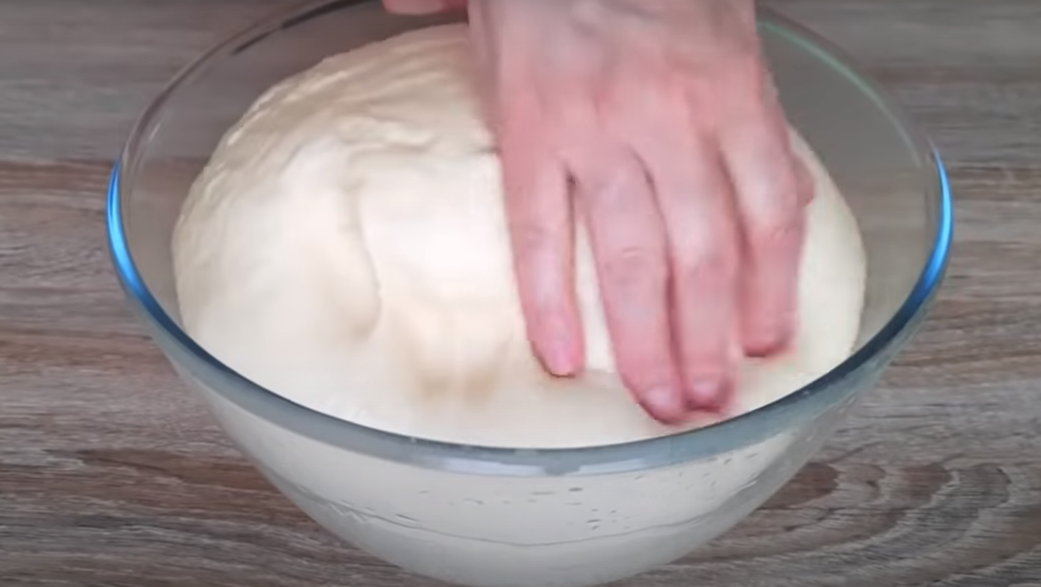 W dużej miscewymieszaj mąkę z innymi suchymi składnikami. Następnie zalej ciepłym mlekiem, roztopionym masłem, białkiem. Wszystko wymieszaj i wyrób puszyste ciasto. Przykryj folią spożywczą i odstaw na 1 godzinę.