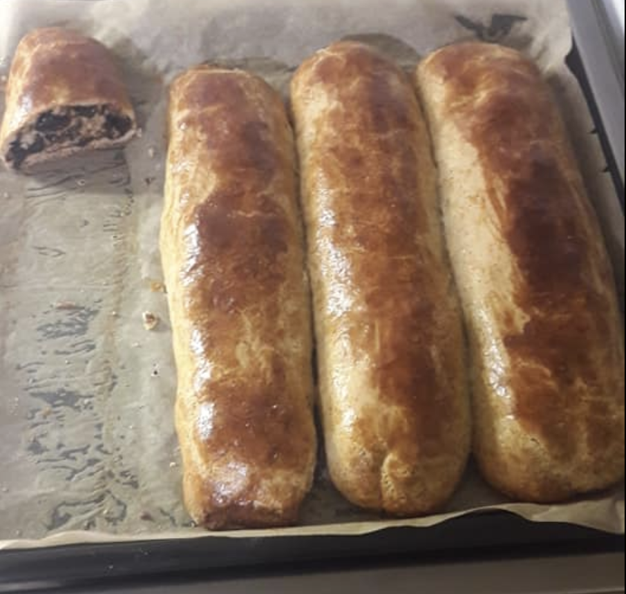 Gotowego strucla układamy na papierze do pieczenia, smarujemy żółtkiem. Pieczemy 25 min. w 180 st. C.