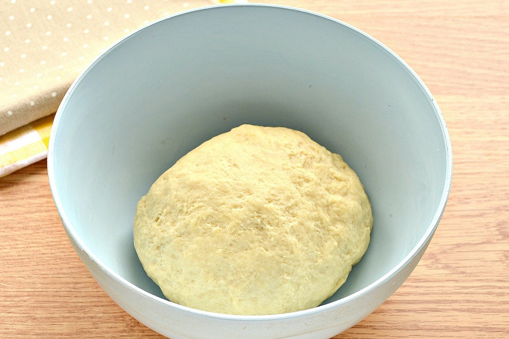 Pozostałą przesianą mąkę wsyp do drugiej miski. Dodaje się sól, olej i cukier. Mieszamy do uzyskania gładkiej masy. Stopniowo dodawaj drożdże. Przykryj masę ręcznikiem kuchennym lub czystą ściereczką i odstaw w ciepłe miejsce na 30 minut.