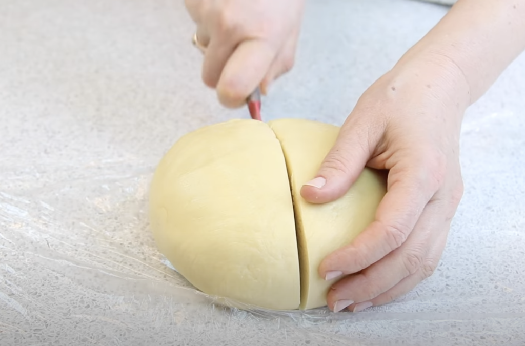 Upewnij się, że ciasto jest dobrze wyrobione. Uformuj z niego kulę i owiń folią cling. Ciasto powinno być przechowywane w lodówce przez co najmniej godzinę.