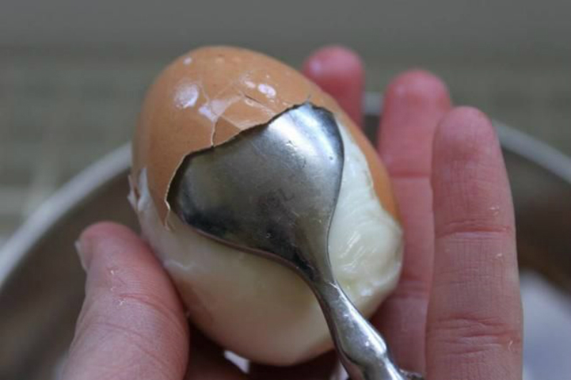 Za pomocą łyżki szybko obierzesz ugotowane jajko .