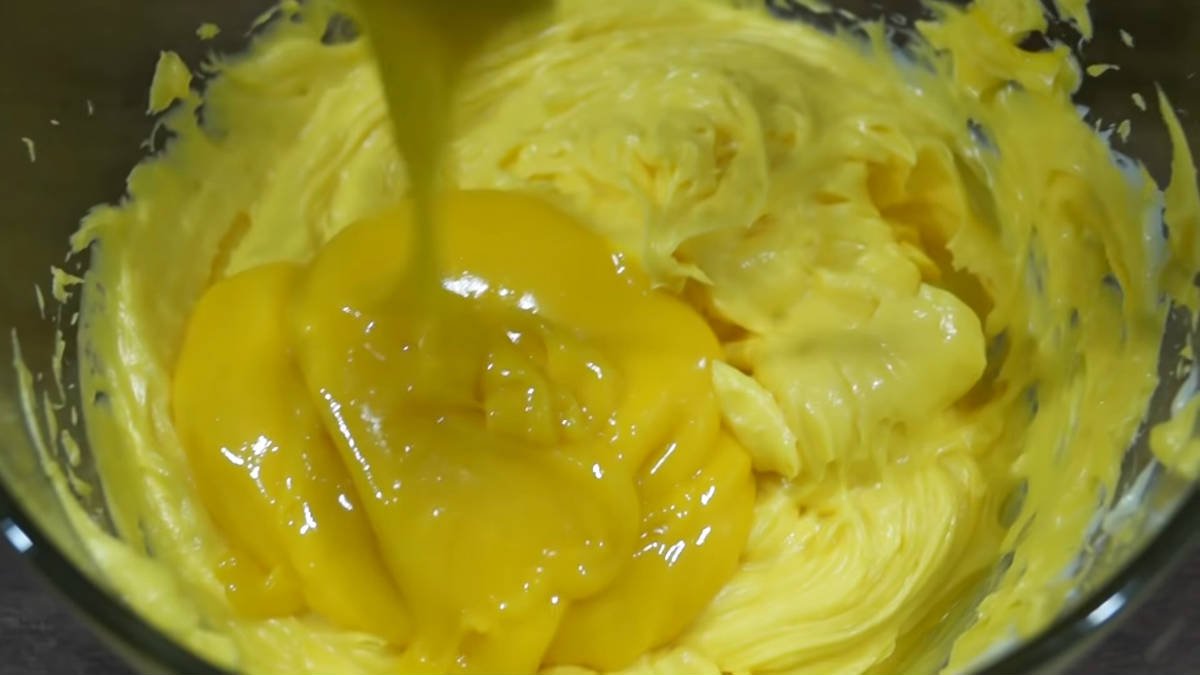 Przed przykryciem odstawić do całkowitego ostygnięcia. Zmiksować masło, aż będzie puszyste. Powoli dodawać do masła ostudzoną mieszankę budyniową. Mieszać do uzyskania gładkiej masy.