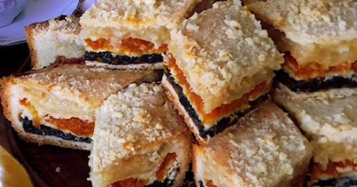 Nadzienie ze śliwek i suszonych moreli jest niezwykle aromatyczne i soczyste, a warstwa cytryny harmonijnie równoważy słodki smak i nadaje przyjemną kwasowość temu pysznemu deserowi.
