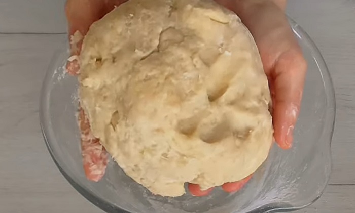 Dodaj cukier, proszek do pieczenia i sól do ciasta. Wymieszaj, a następnie wlej mleko. Zagnieć ciasto. Uformuj je w kulkę.