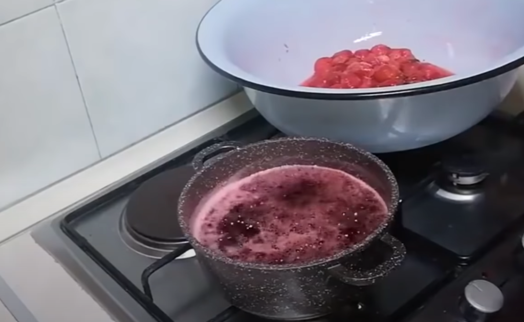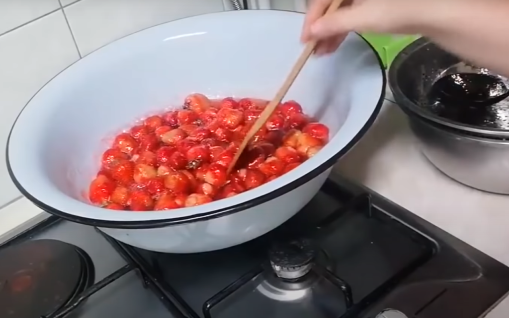 Następnie, ostrożnie odcedź syrop do innego garnka i gotuj. Gotującym się syropem zalej truskawki, a potem proces powtórz. Tym razem syrop gotuj dłużej, aż osiągnie konsystencję lekko rzadszego dżemu.