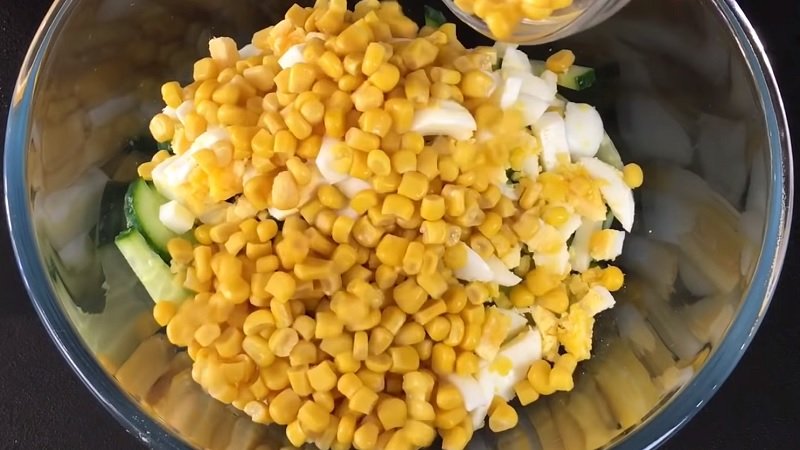 Ser typu warkocz, rozłóż i pokrój w paski o długości około 3 cm. Wszystkie pokrojone składniki oraz kukurydzę wsyp do miski.
