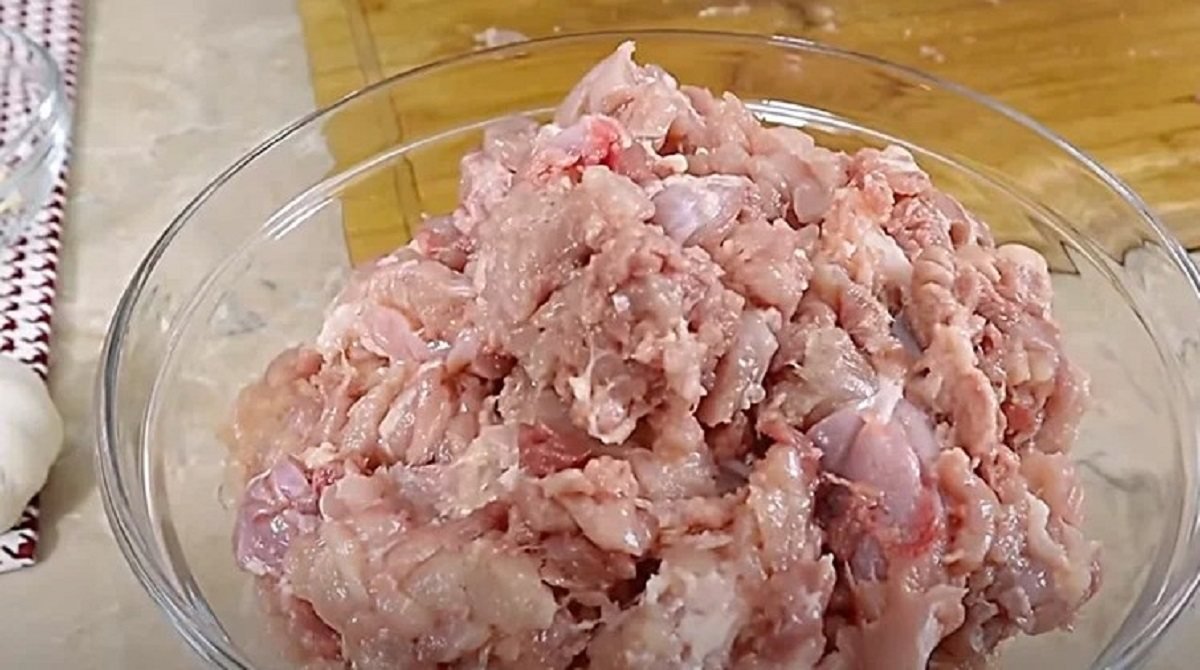 Ugotować mięso, oddzielając kości. Zalej mięso wodą. Wystudź mięso, a następnie posiekaj je w maszynce do mięsa z trzema ząbkami czosnku. Dodaj sól, pieprz i paprykę. Dobrze wymieszać. Do mięsa można dodać odrobinę bulionu drobiowego.