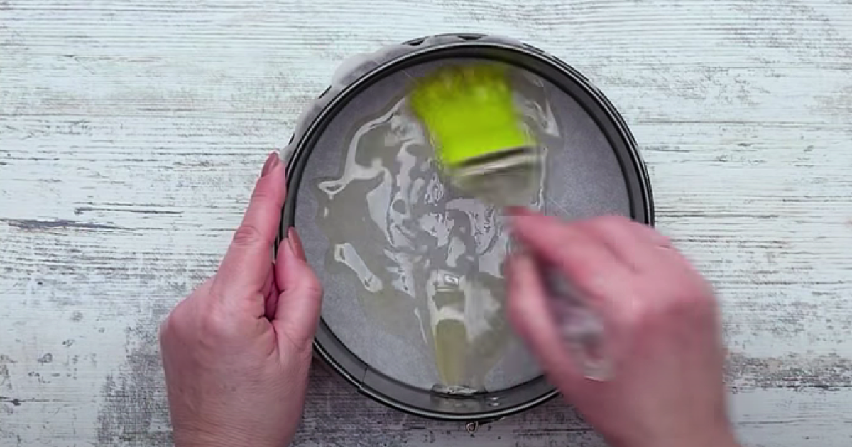 Naczynie do pieczenia wykładamy pergaminem. Smarujemy olejem.