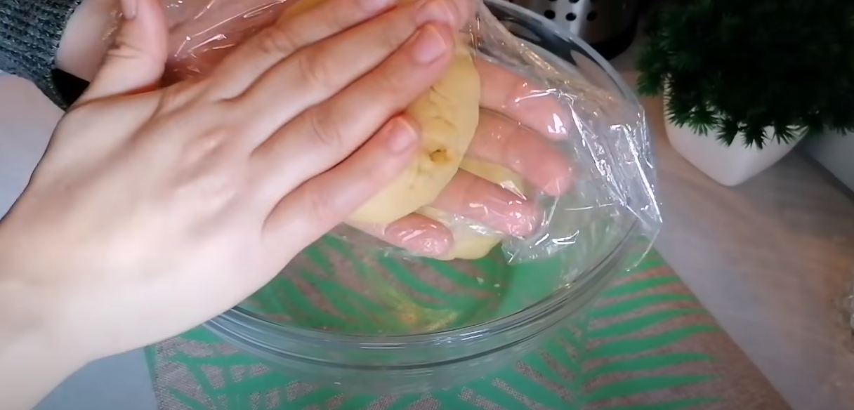 Zdejmij mikser i przejdź do pracy ręcznej. Mieszaj i wyrabiaj ciasto aż do uzyskania jednolitej konsystencji. Podziel ciasto na dwie równe części, owinąć każdą w folię spożywczą i umieść w zamrażarce na 30 minut (ważne, aby nie była to lodówka).