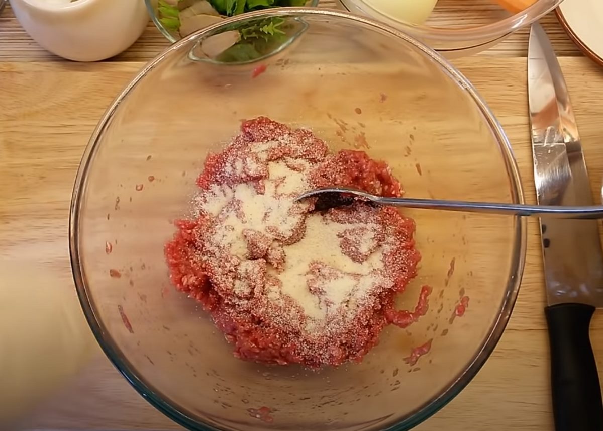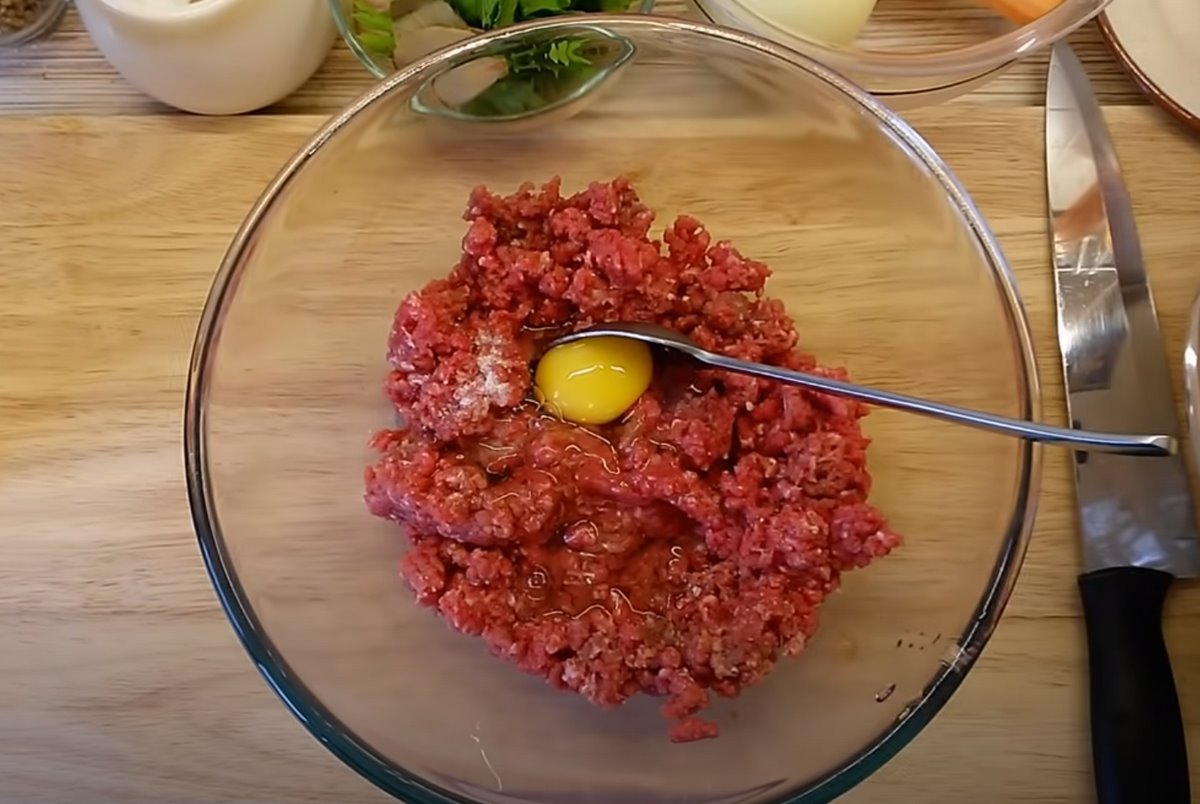 Najpierw wlej wodę do garnka i postaw na ogniu. Podczas rozgrzewania zacznij przygotowywać mięso mielone. Dodaj sól i pieprz oraz jedno jajko i wymieszaj.