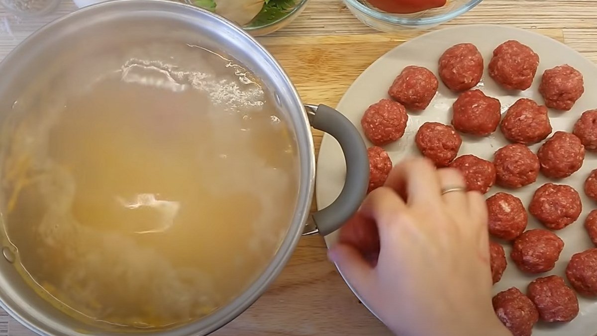 Poczekaj, aż bulion ponownie się zagotuje i dopiero wtedy wrzucaj klopsiki pojedynczo. Gotuj na małym ogniu przez 15-20 minut.
