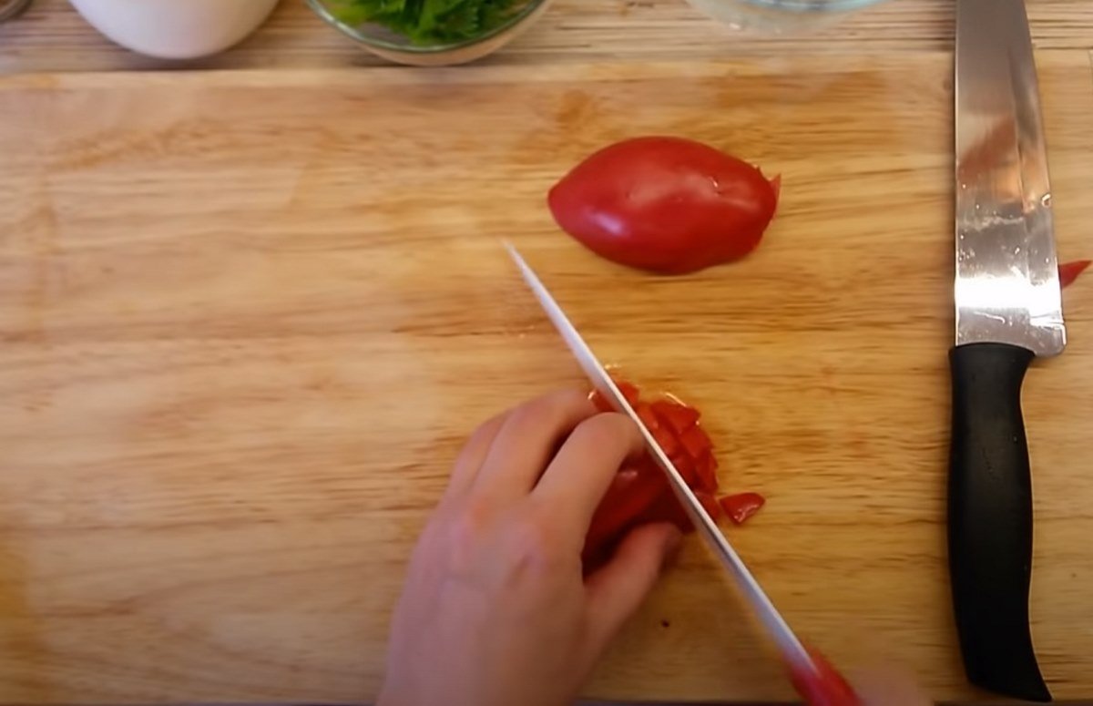 Ostatnim krokiem jest zagęszczenie. Aby to zrobić, pokrój pomidora w drobną kostkę. Nada miłej kwaskowości Twojej cudownej zupie z klopsikami i ziemniakami.